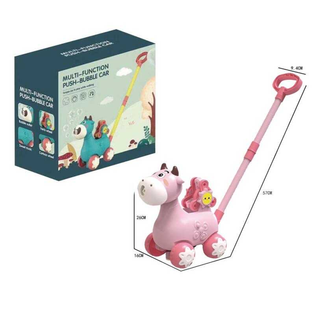 • Каталка з мильними бульбашками 9001 Штрих = 90027 (30) підсвічування, мелодія, 2 пляшечки з мильними бульбашками, висота 57 см, млин, в коробці