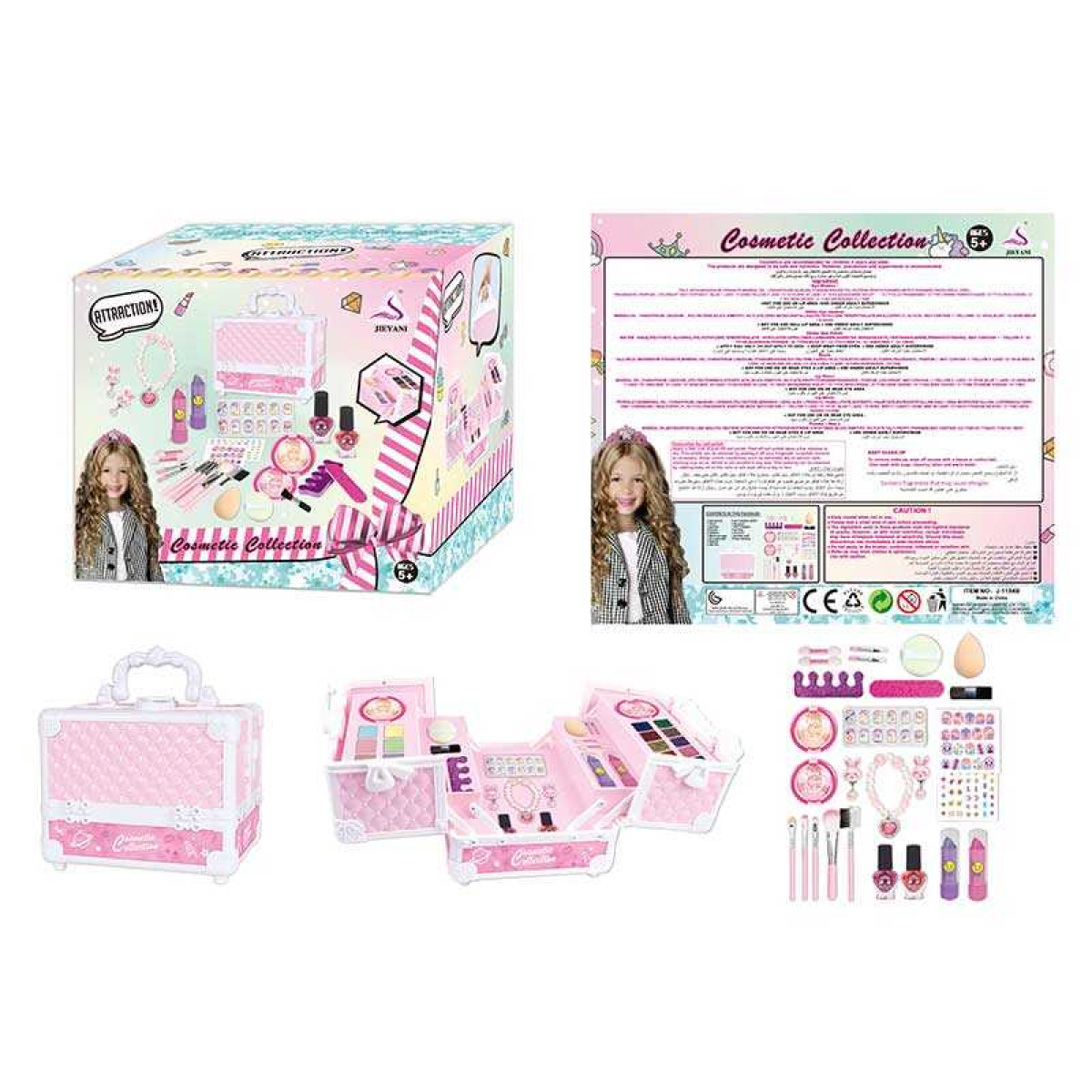 • Косметика J 1154 B (18/2)  сережки, браслет, 2 помади, тіні сухі, тіні вологі, пензлики, спонжі, тіпси, пилочка, лаки для нігтів, рум’яна, пудра, розділювач для пальчиків, рухомі елементи, бокс, в коробці