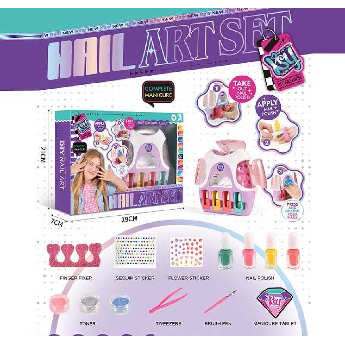 • Набір для манікюру KSY 928 (48/2) підсвічування, пінцет, пилочка, пензлик, аксесуари, наліпки, лаки, апарат для манікюру, блискітки, в коробці