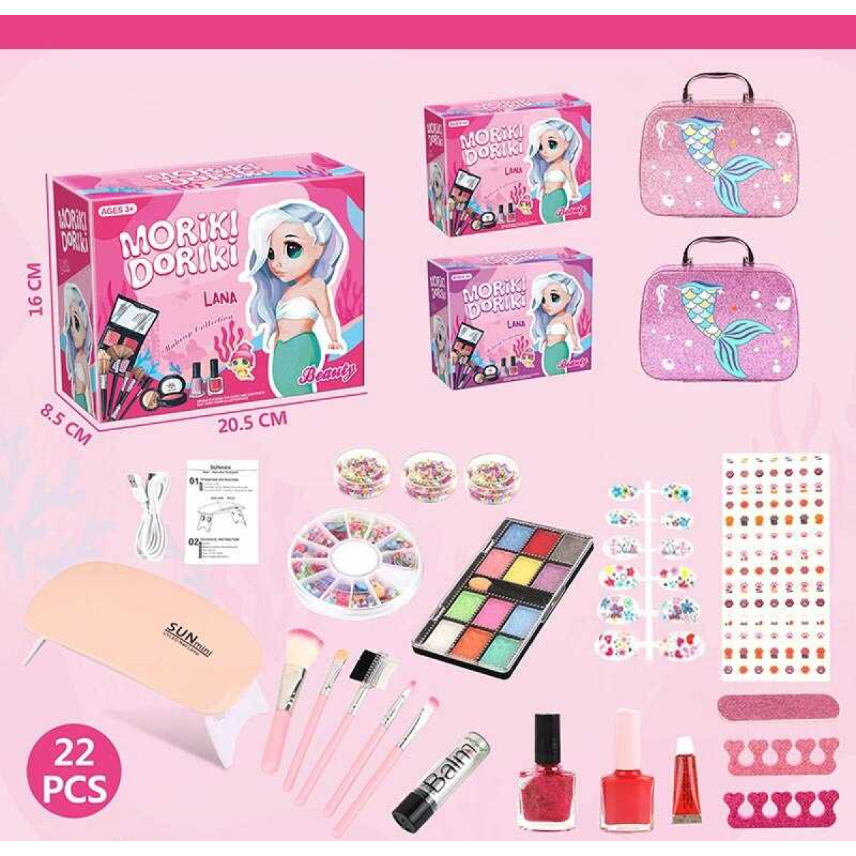 Набір косметики 40013 (60/2) 22 аксесуари, лаки, наліпки, тіні, розділювачі для пальців, UV/LED лампа SUNmini 6W, косметичка, 2 види, в коробці