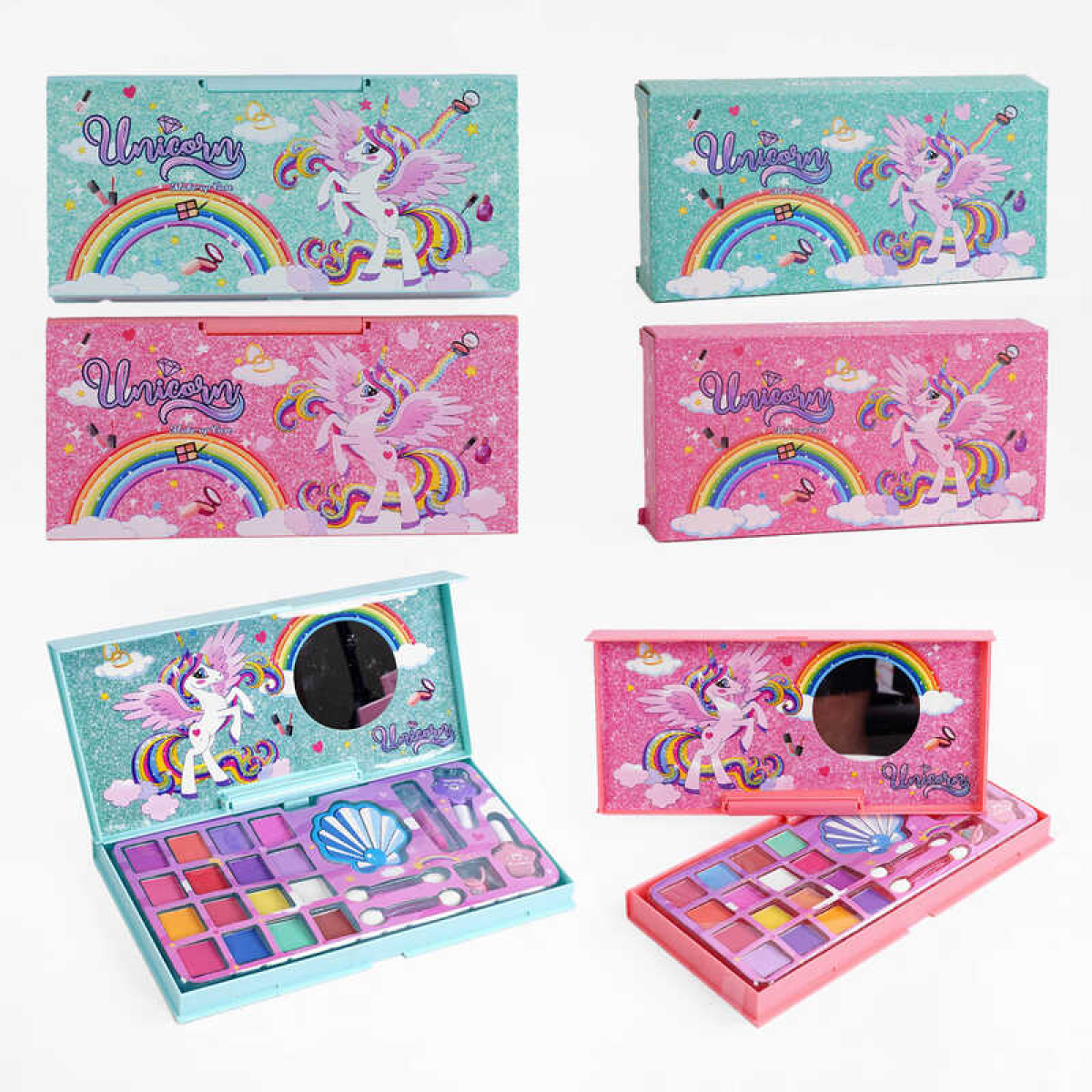 Набір косметики AA 2813 (144/2) 2 види, помада, лак для нігтів, тіні, аплікатори, в коробці