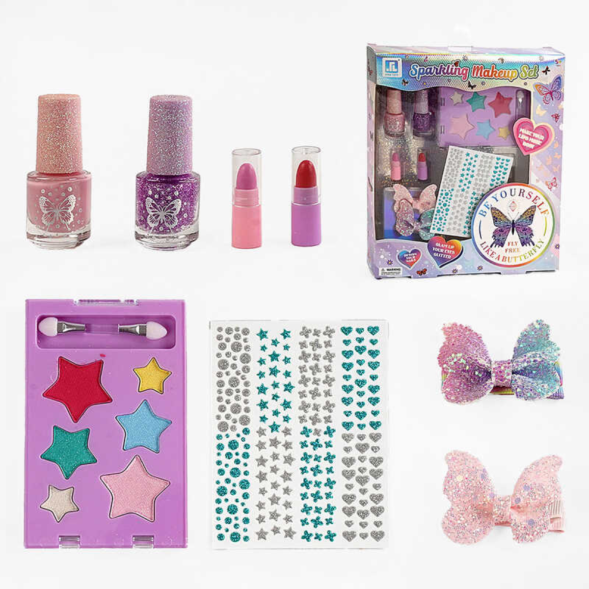 Набір косметики ZR 38 B (96/2) тіні для повік, лаки для нігтів, помади, заколки з бантиками, наліпки, в коробці