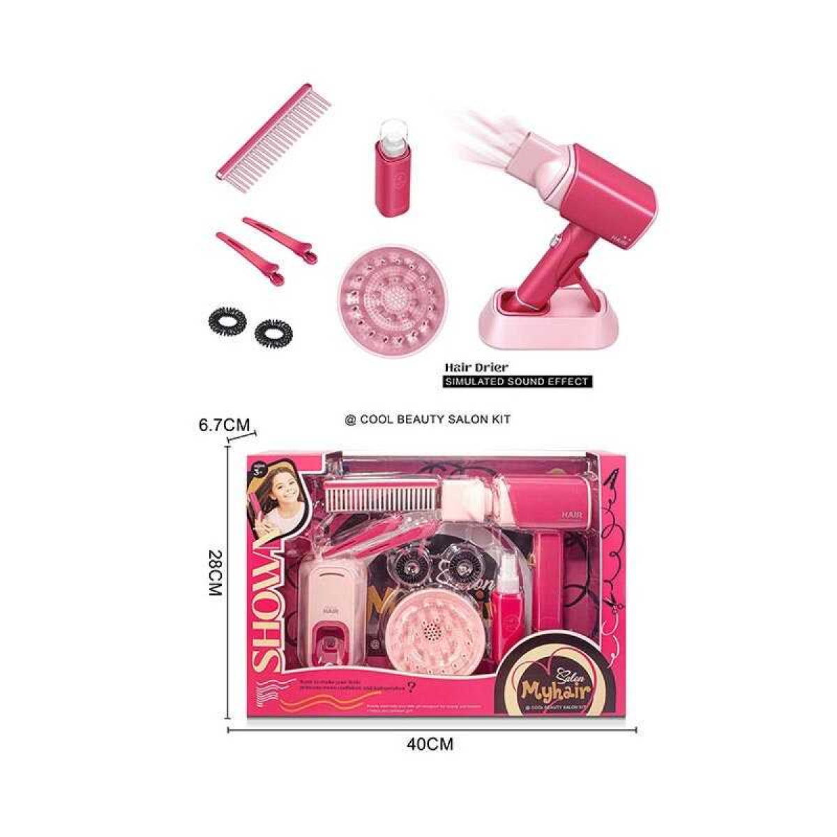 Набір перукаря 2802-3 (36/2) підсвічування, функціональний фен з підставкою, затискачі, 2 насадки, гребінець, пляшечка з розпилювачем, резинки, в коробці
