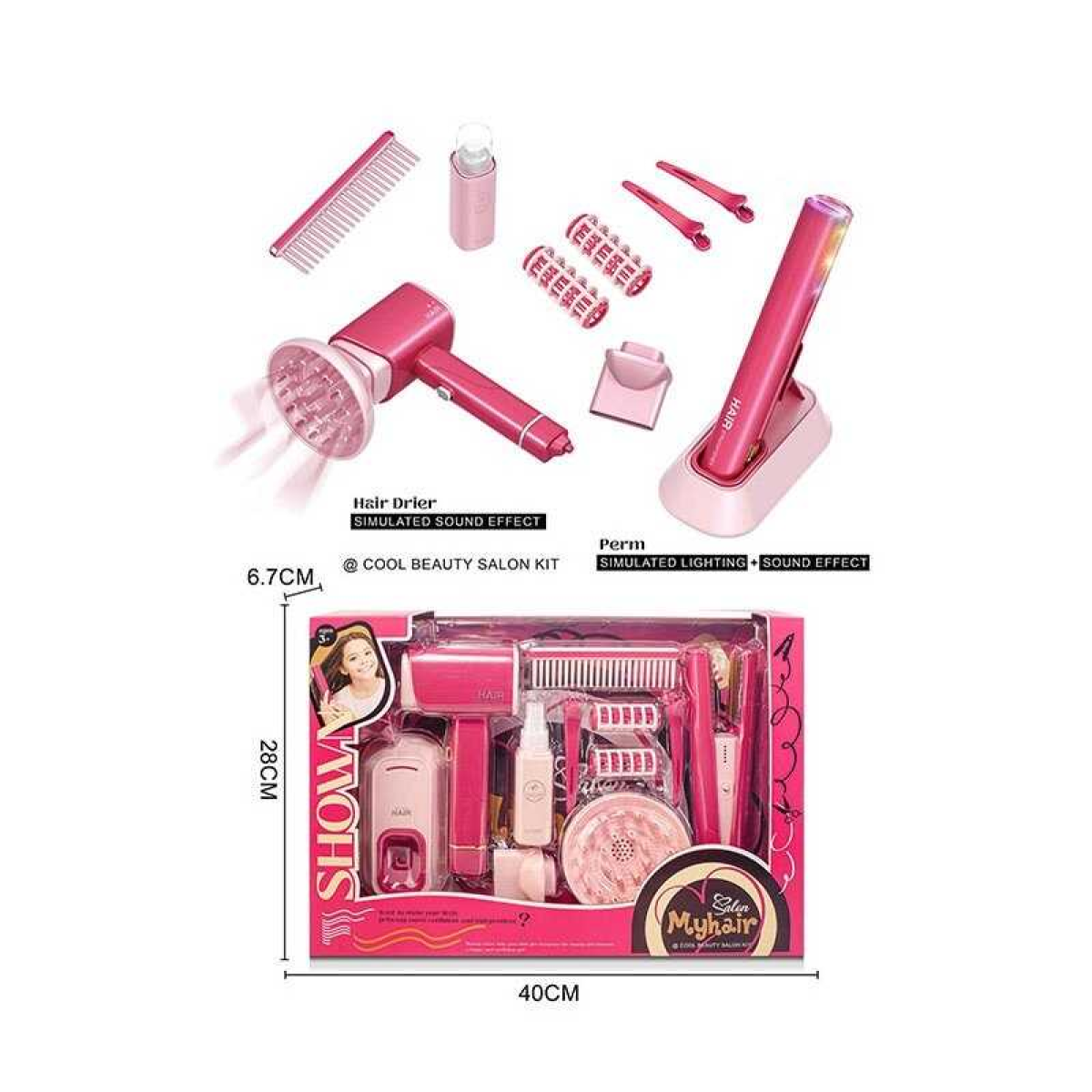 Набір перукаря 2802-4 (36/2) підсвічування, функціональний фен з підставкою, затискачі, 2 насадки, гребінець, бігуді, пляшечка з розпилювачем, резинки, в коробці