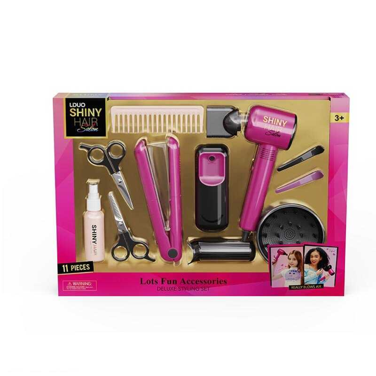 Набір перукаря 626022 (18) 11 елементів, звук, підсвічування, функціональний фен, стайлер, насадка, ножиці, заколки, в коробці