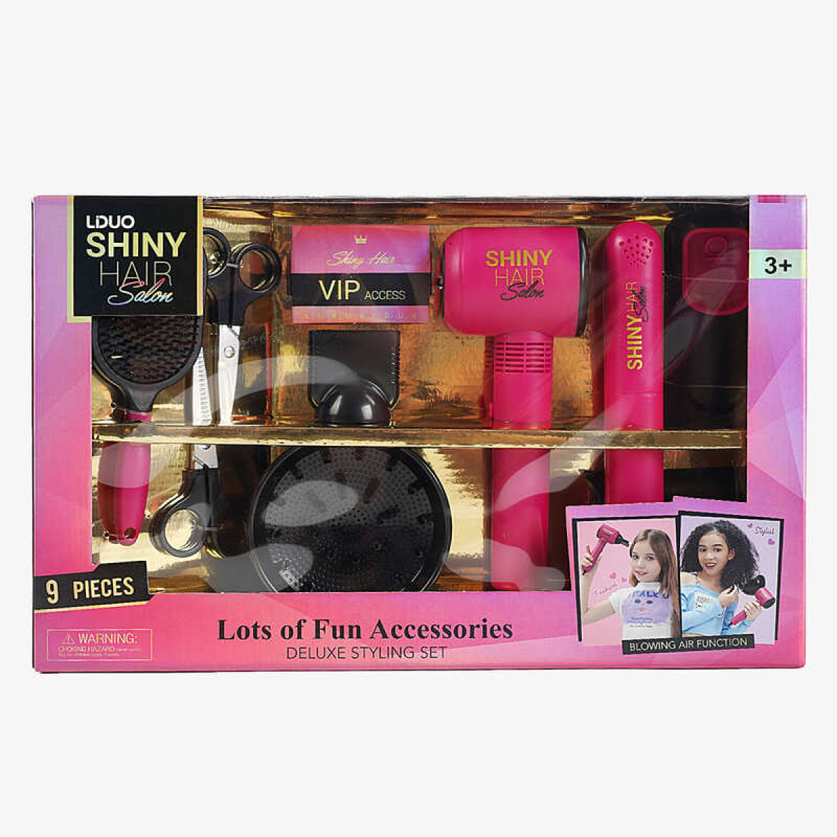 • Набір перукаря 626029 (18) 9 аксесуарів, світло, звук, стайлер, фен видуває повітря, 2 насадки, щітка, 2 пари ножиць, у коробці