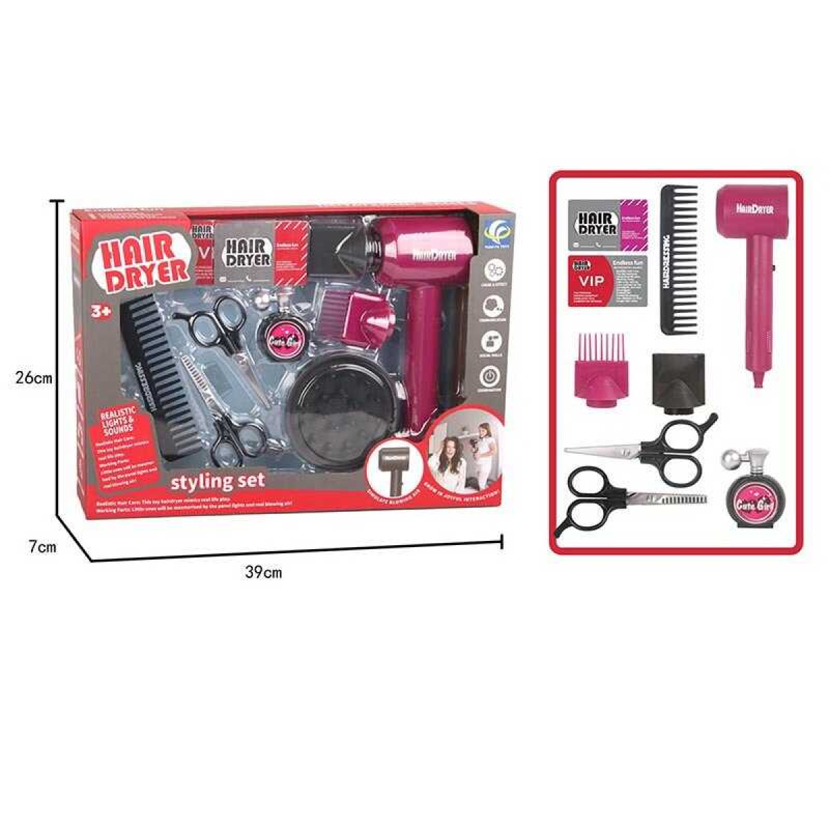 • Набір перукаря YF 820 D-1 (42/2) функціональний фен, на батарейках, аксесуари, в коробці