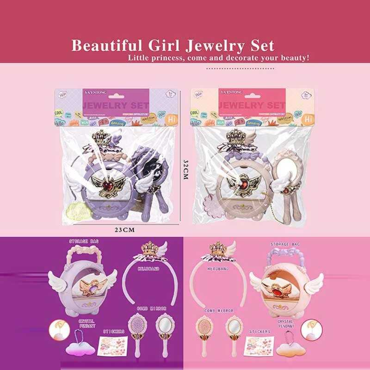 Набір прикрас 608 A 25 (96) 2 види, прикраси, скринька, обруч, дзеркальце, щітка для волосся, в пакеті