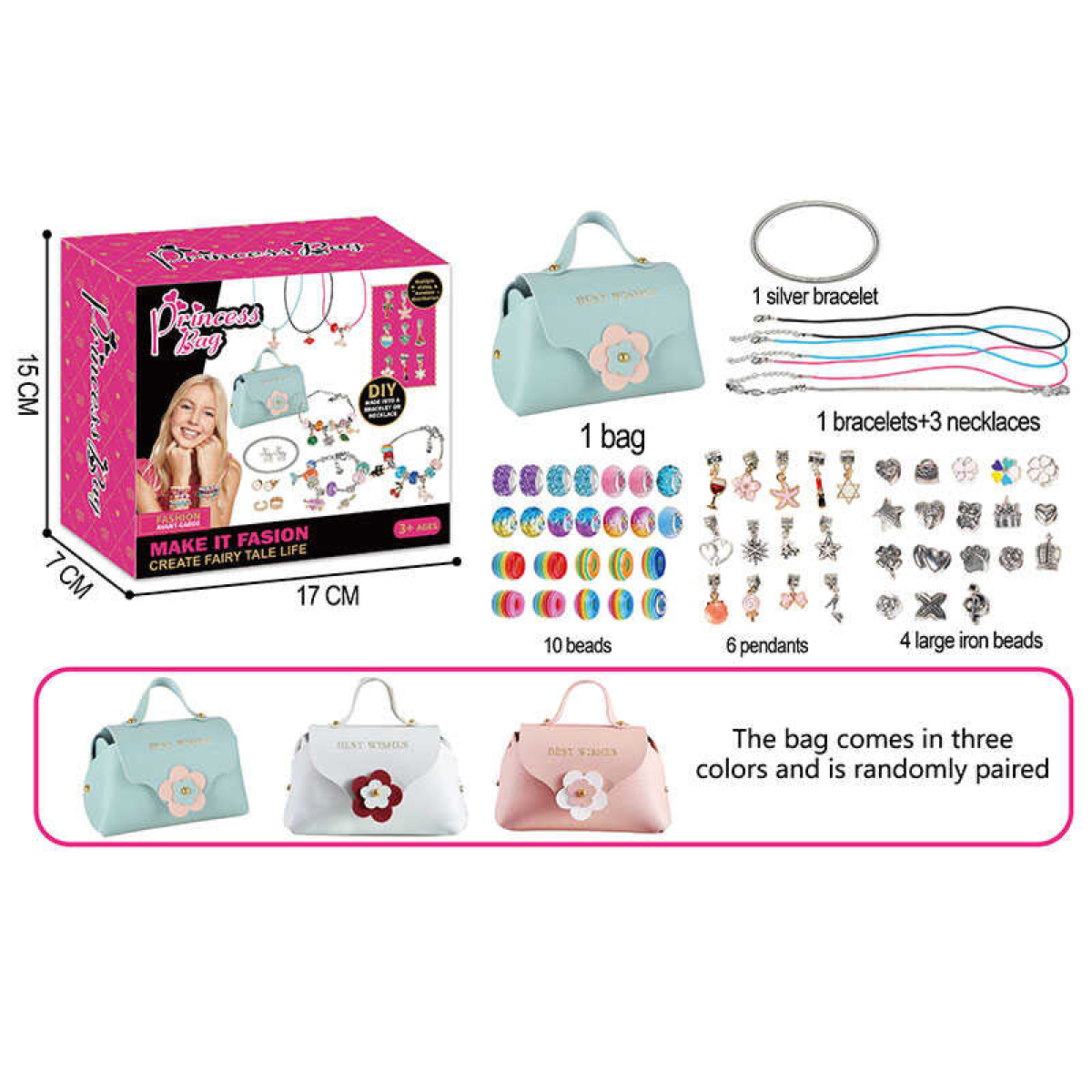 Набір прикрас 762-34 (120/2) намистини, підвіски, сумочка, основи для браслетів, в коробці
