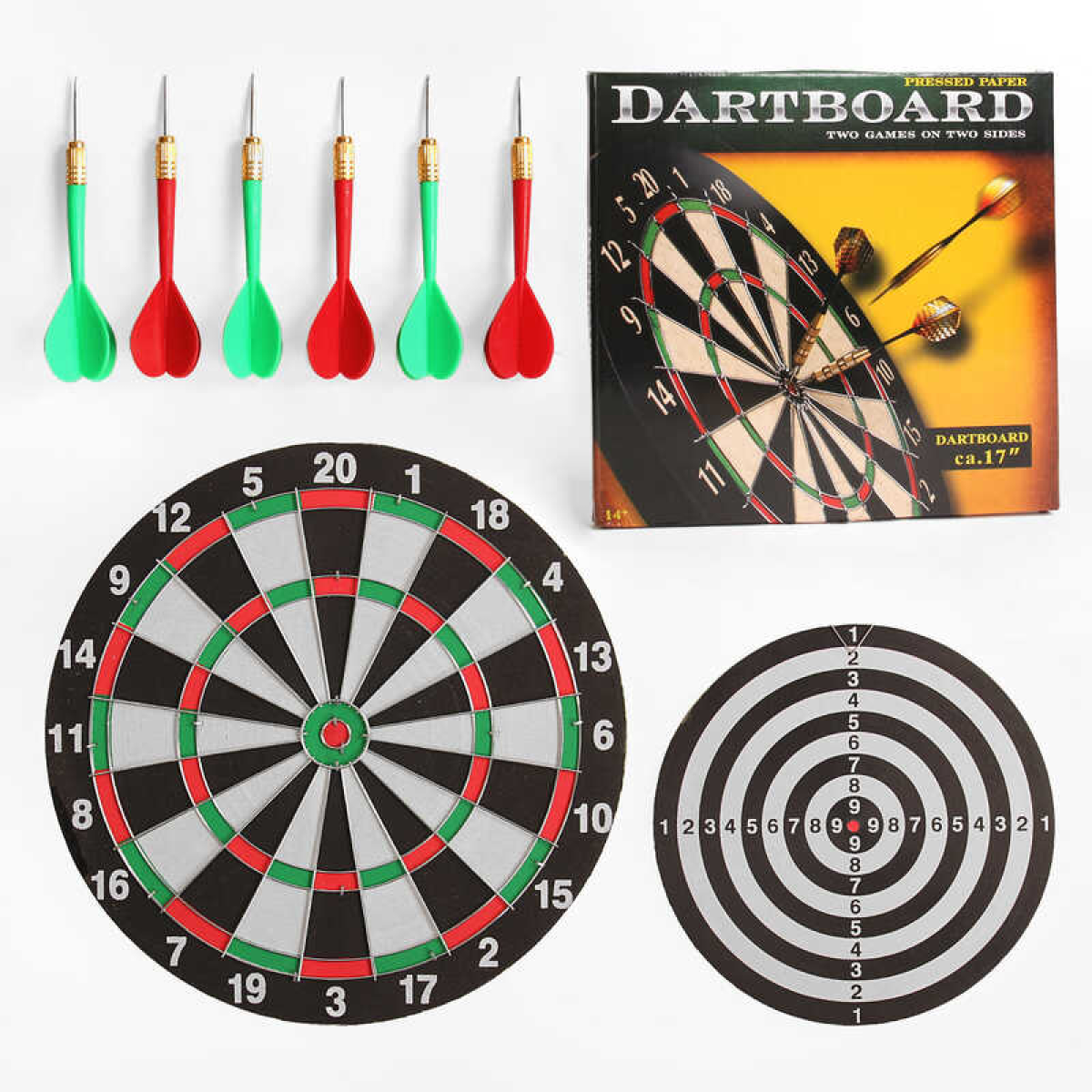 Дартс ZZYW 17 H (12) двостороння дошка, 6 дротиків з металевим наконечником, фіксація на гачок, діаметр поля 40 см, в коробці