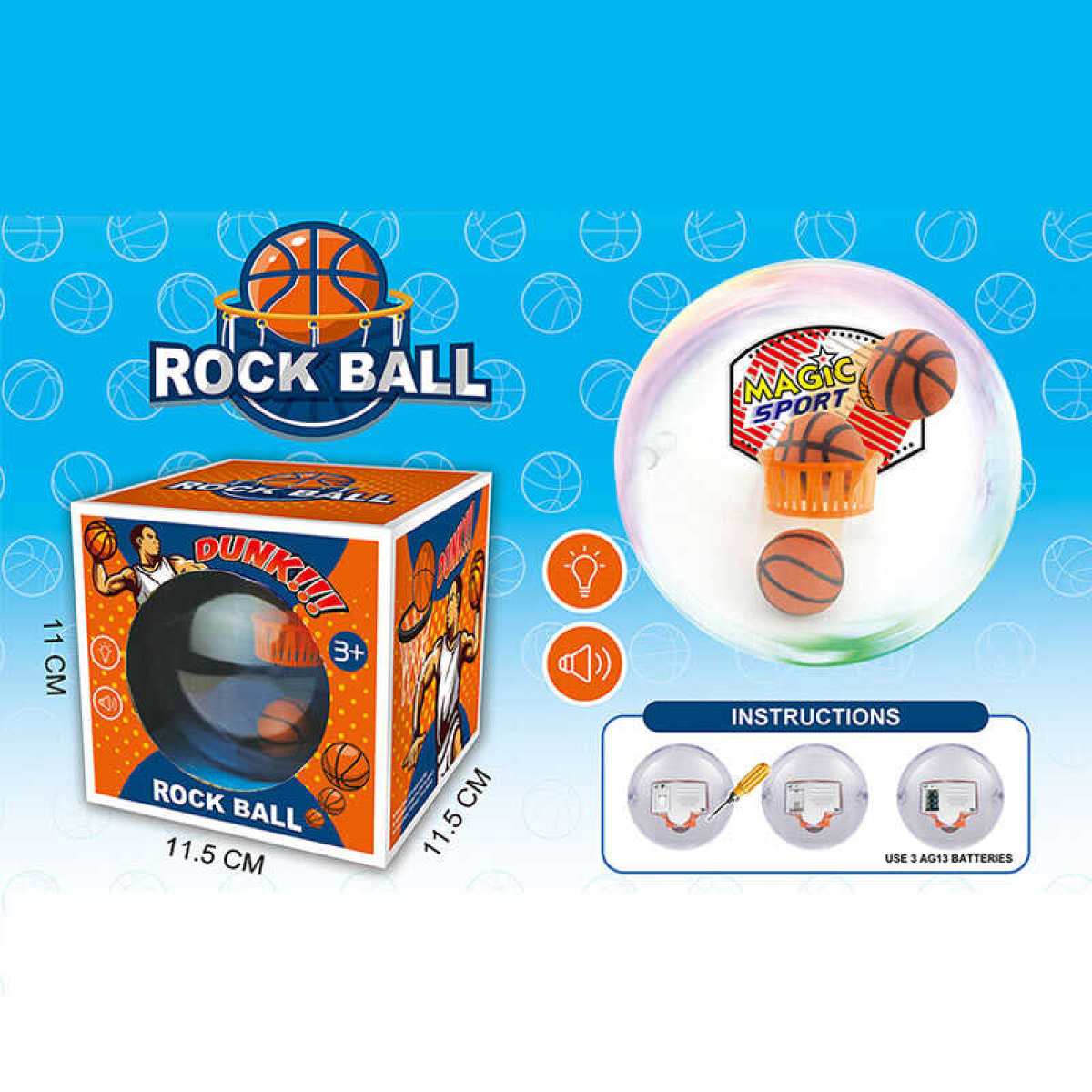 • Баскетбол 111 (72/2) підсвічування, звук, прозора кулька діаметром 10 см, гумовий м’ячик, кошик на щиті, в коробці