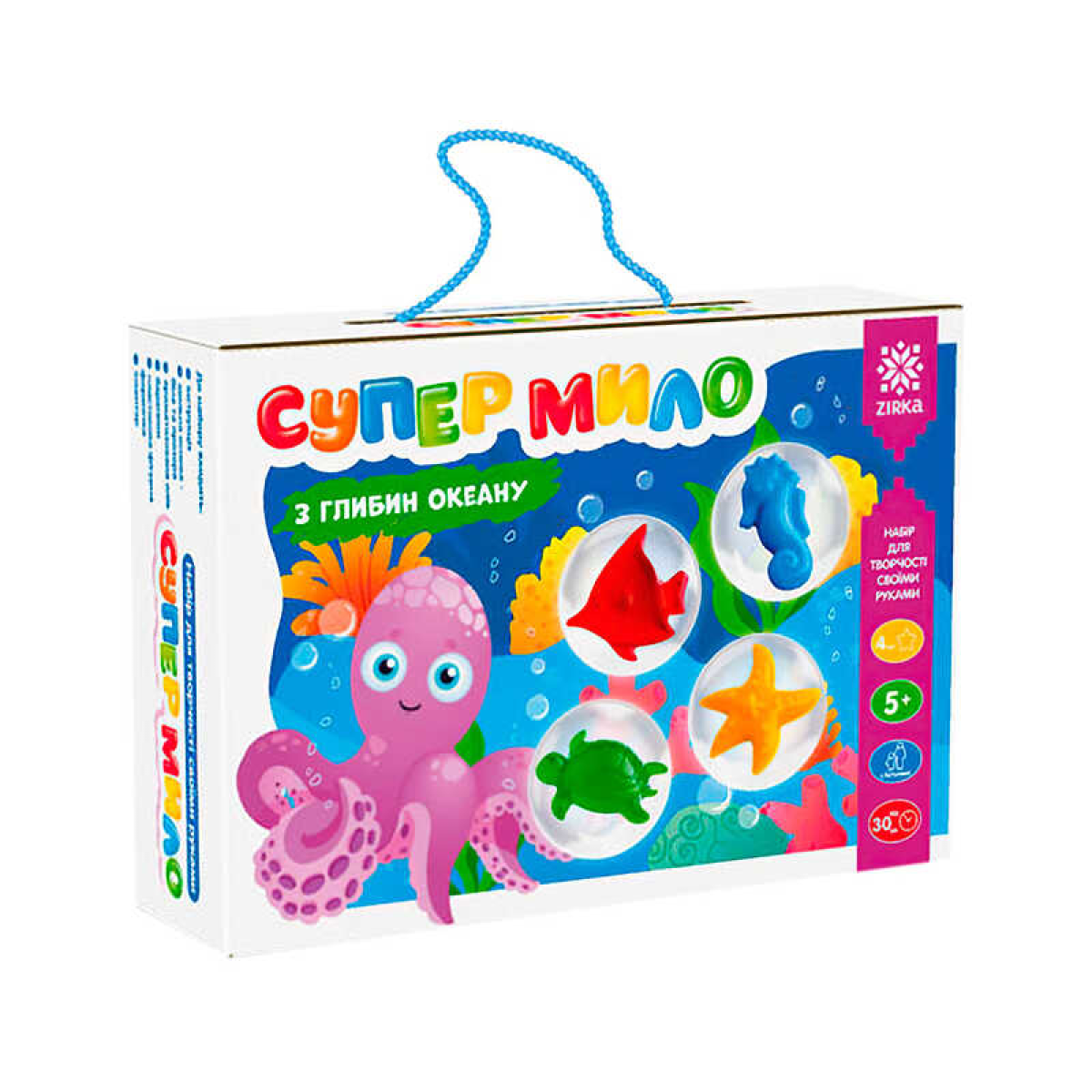 гр Супер-мило “З глибин океану“ 158116 (23) “Ранок“, мильна основа, масло, барвники, фігурна формочка, стаканчики, ложечка, шпатель, в коробці