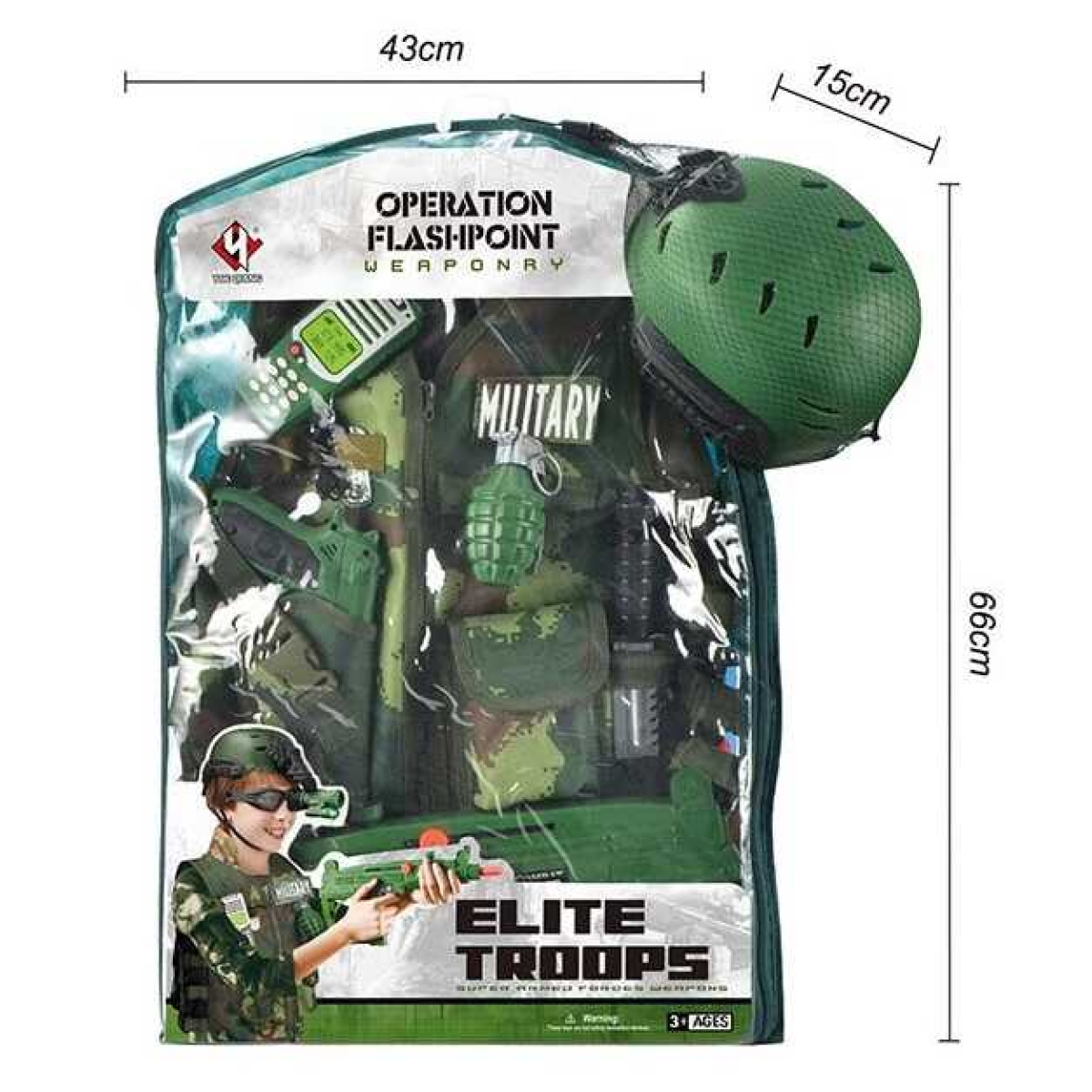 • Військовий набір M 012 A (12) 12 елементів, каска, автомат, пістолет, граната, у пакеті