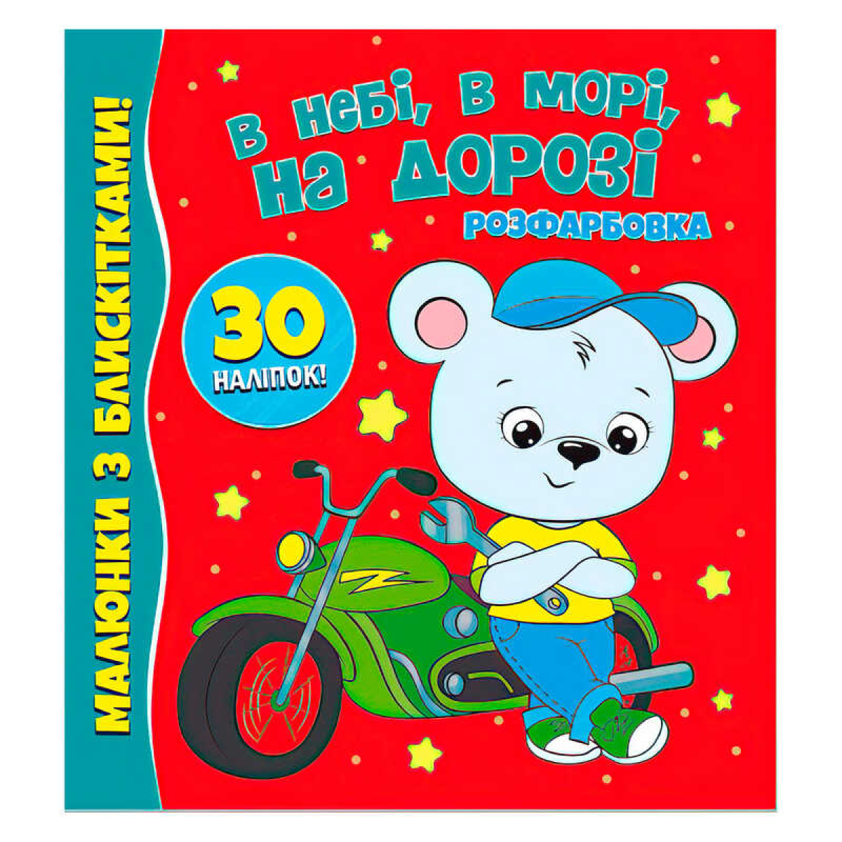 гр Розфарбовка А4 з блискітками + 30 наліпок “В небі, в морі, на дорозі“ (50) 9786177775842