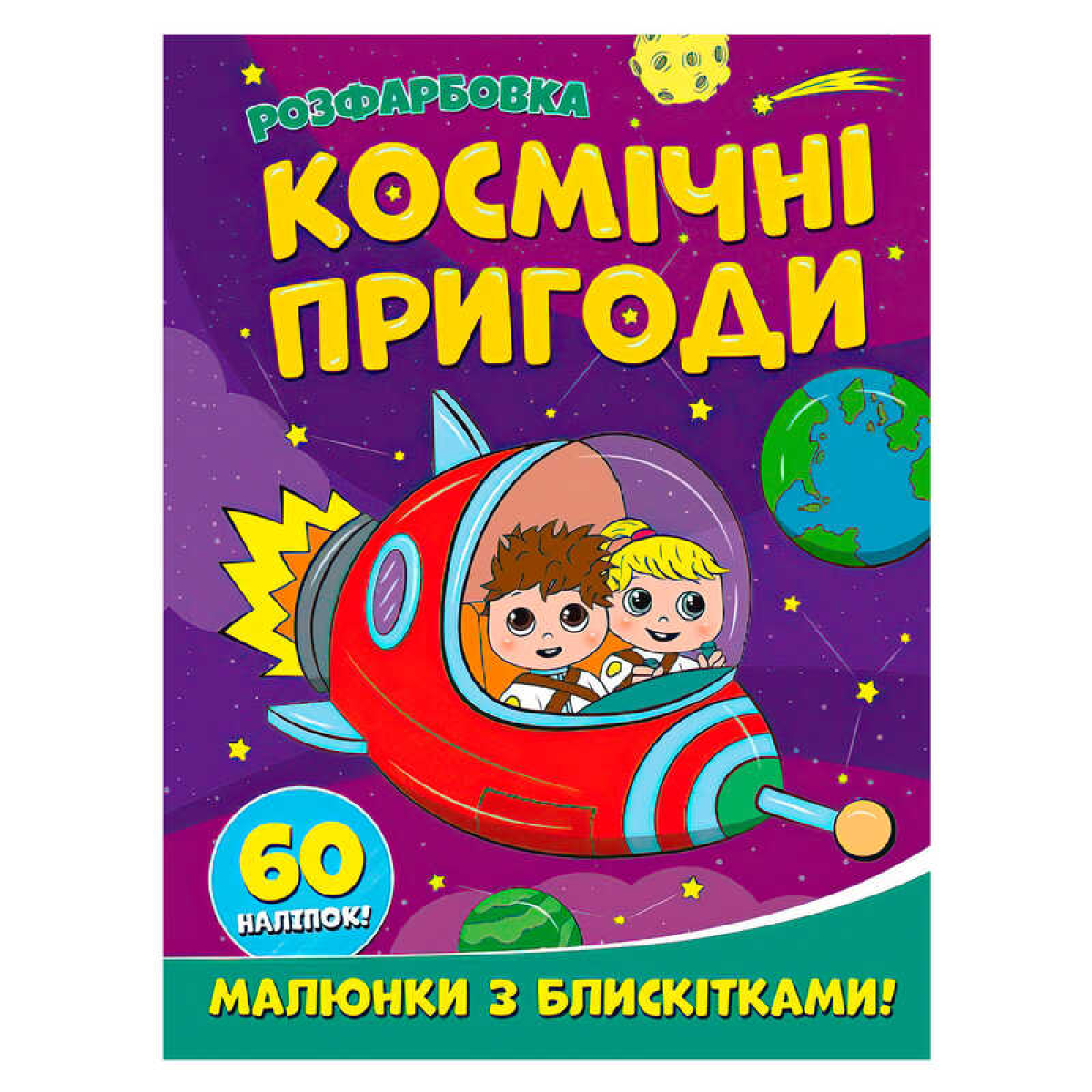 гр Розфарбовка А4 з блискітками + 60 наліпок “Космічні пригоди“ (50) 9786172107754