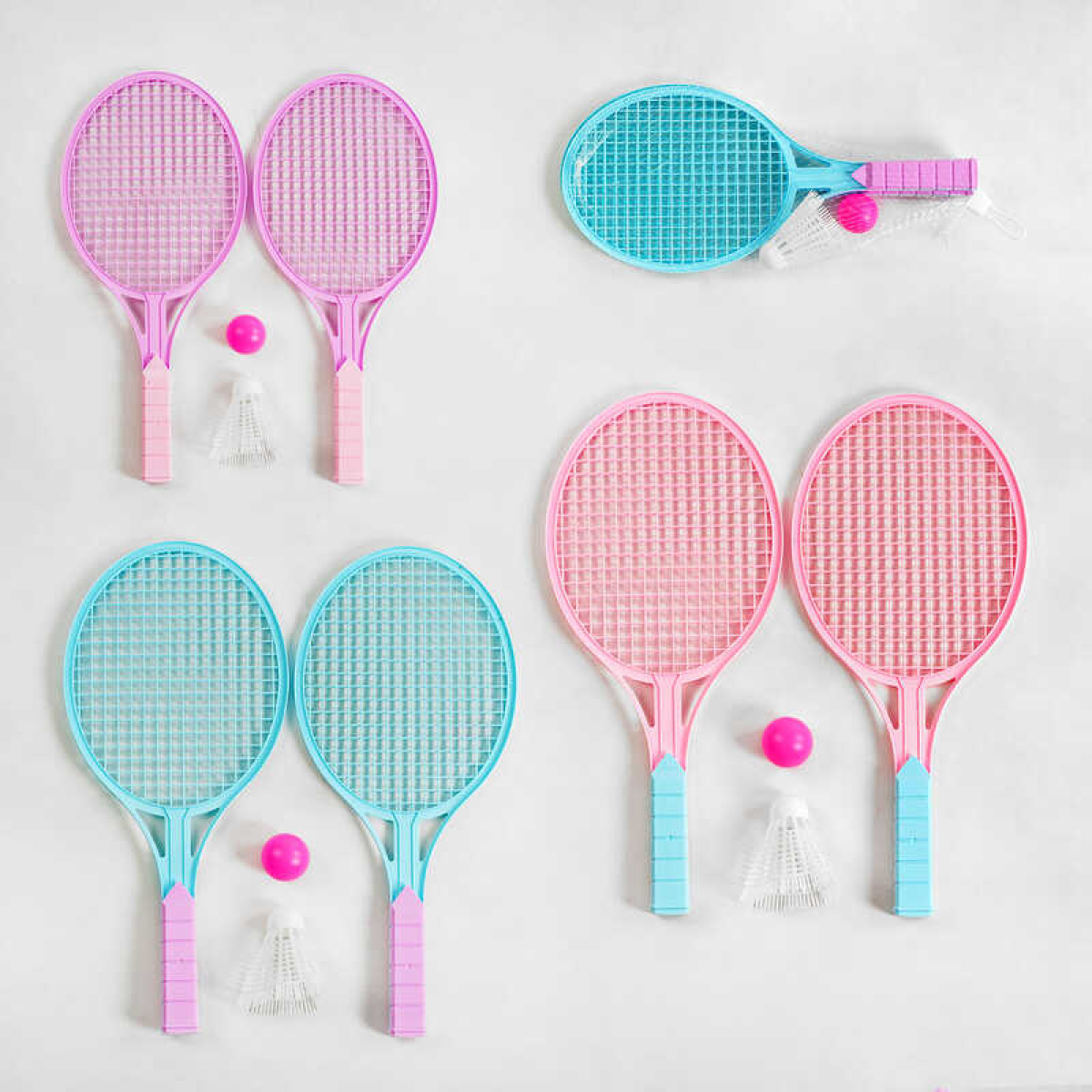 Ракетка 5001 (360) 3 кольори, 2 ракетки, м“ячик, воланчик, в сітці, ВИДАЄТЬСЯ ТІЛЬКИ МІКС ВИДІВ