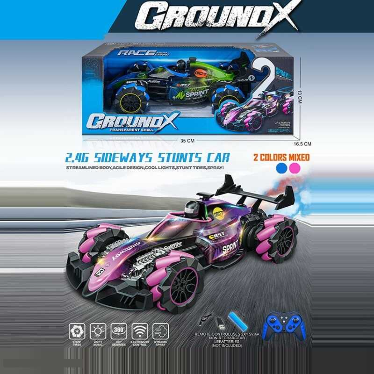 Машина на радіокеруванні 585-95 A (30/2) підсвічування, звук транспорту, парогенератор, обертання на 360°, рух з боку в бік, роликові колеса, протиударний корпус, пульт 2.4 GHz, акумулятор 3.7 V, в коробці