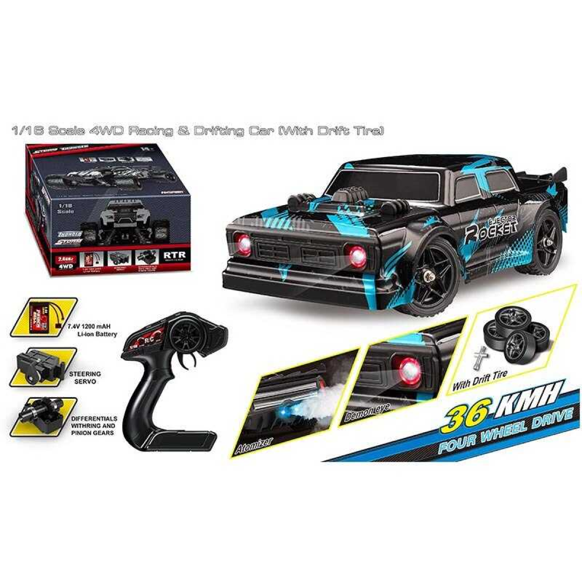 Машина на радіокеруванні HS 16352 (8) акумулятор 7.4 V, USB-кабель, пульт 2.4 G, масштаб 1:16, швидкість до 36 км/г, протиударний корпус, гумові шини, дрифт, парогенерація, в коробці
