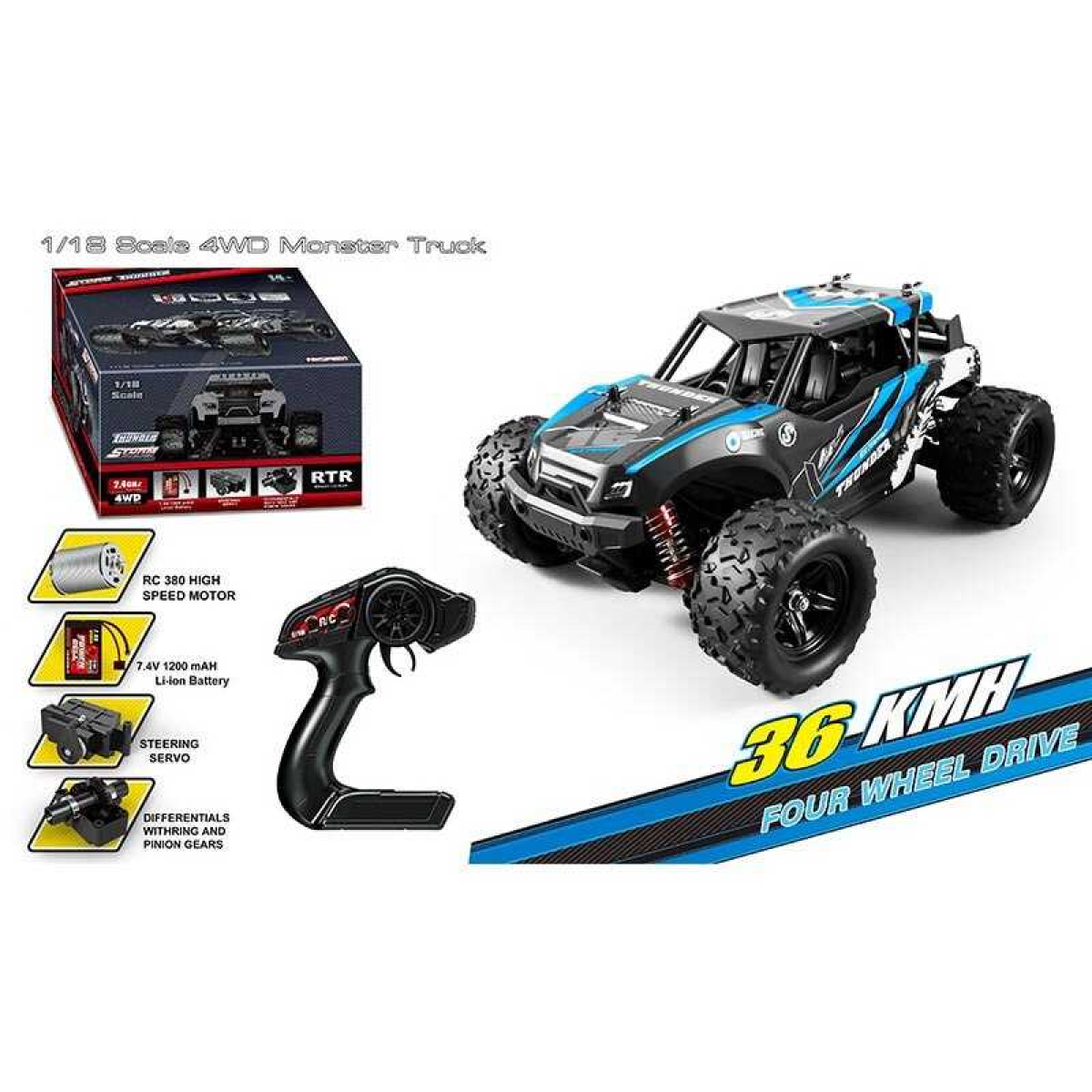 Машина на радіокеруванні HS 18312 (8) акумулятор 7.4 V, USB-кабель, пульт 2.4 G, протиударний корпус, гумові шини, швидкість до 36 км/г, в коробці