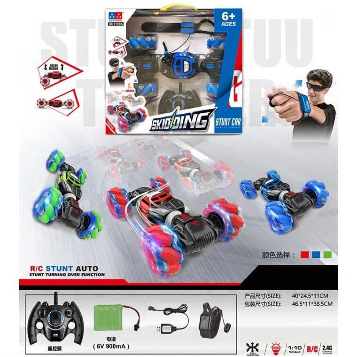 Машина на радіокеруванні UD 2199 A (8) 3 кольори, акум. 6V, пульт 2.4G + сенсорний браслет, 2 USB-кабелі, масштаб: 1:10, підсвічування, звуки, зміна положення корпуса, дрифт, роликові колеса, ВИДАЄТЬСЯ МІКС, в коробці