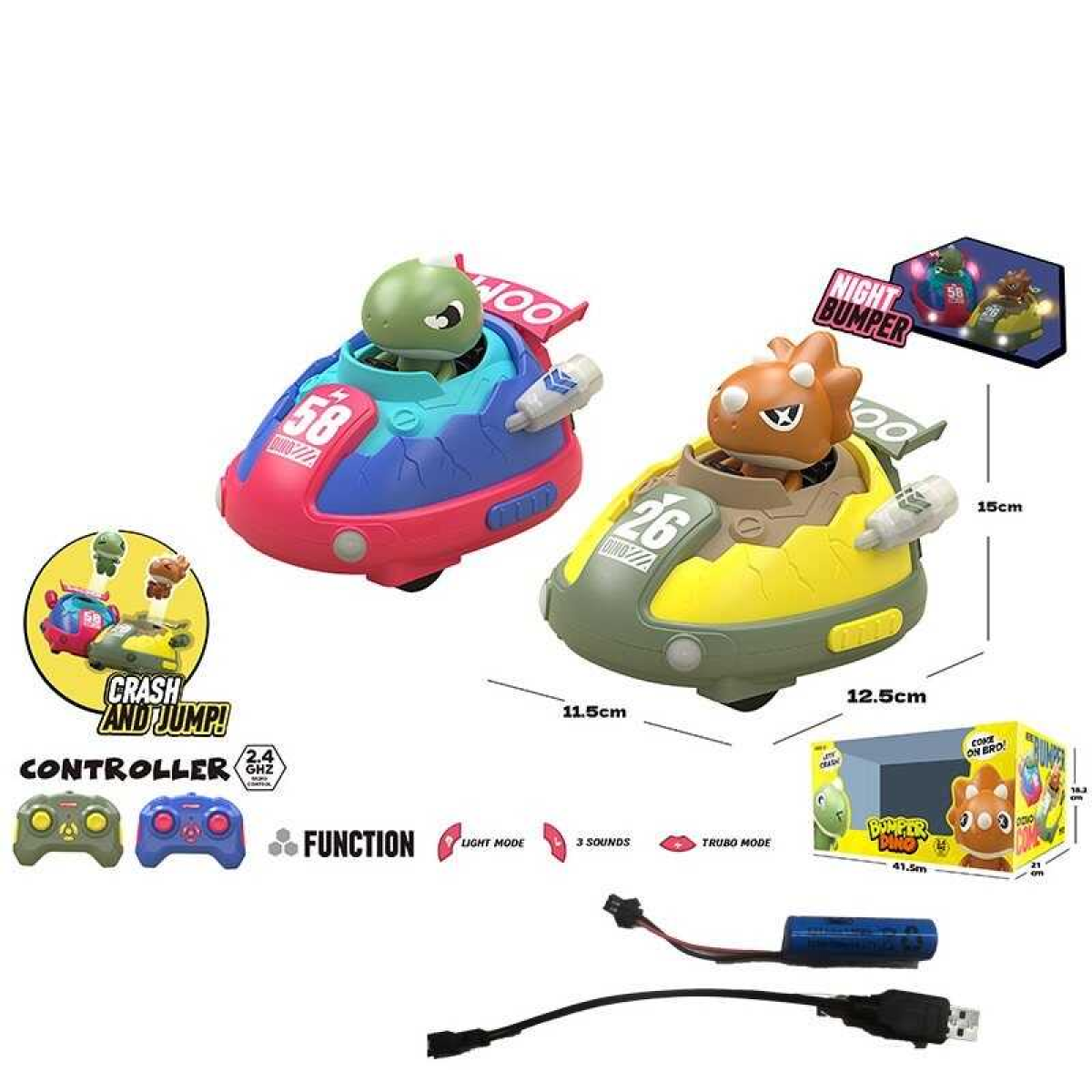 Набір машин на радіокеруванні DC 302 A (12) 2 шт, фігурки героїв, музика, підсвічування, пульт 2.4G, акум. 3.7V, USB-кабель, катапульта, в коробці