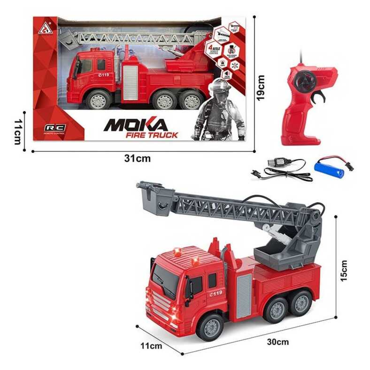 Пожежна машина на радіокеруванні 2075 (36) підсвічування, звуки, гумові шини, акум. 3.7V, пульт 40 MHZ, масштаб 1:16, рухомі елементи, USB-кабель, в коробці