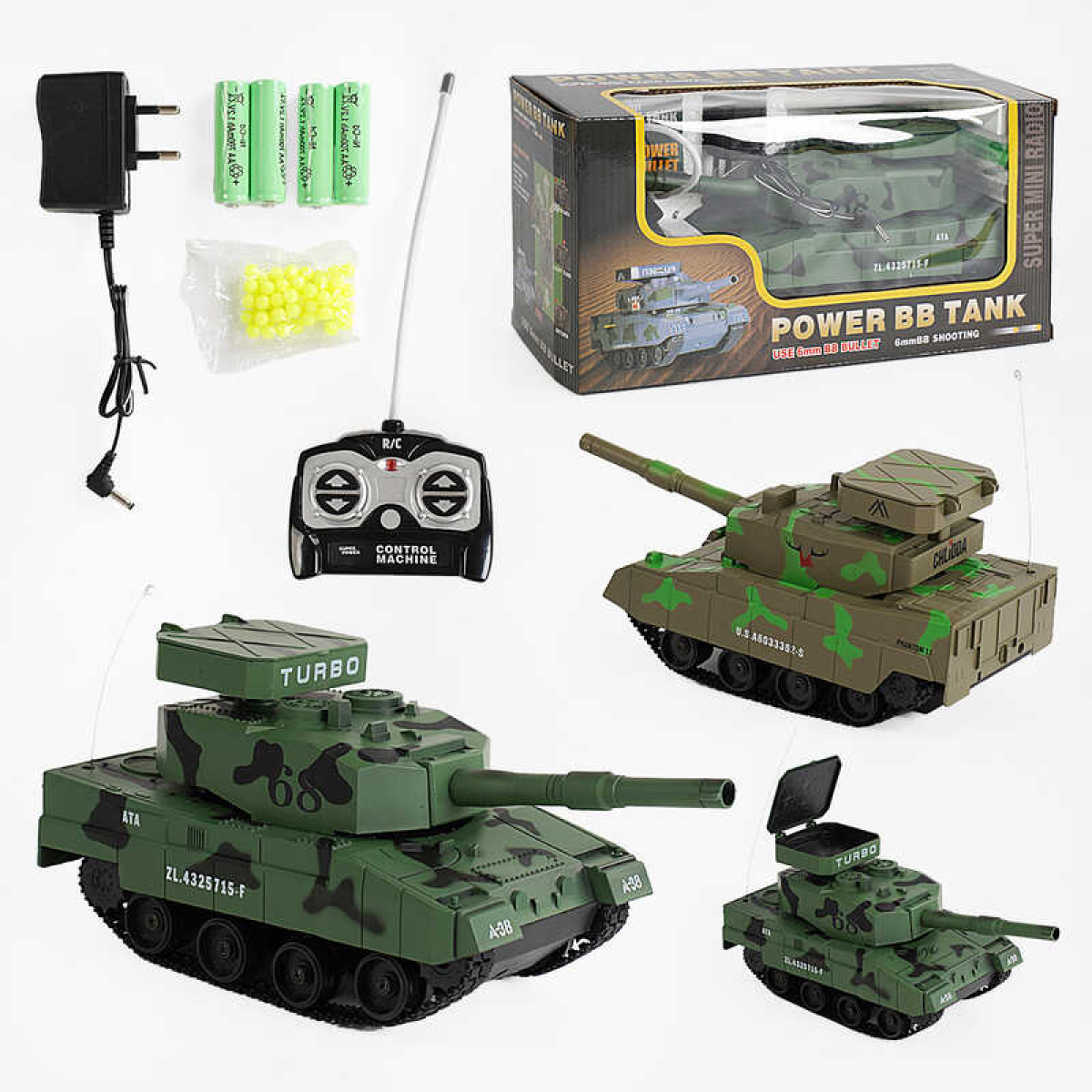 Танк на радіокеруванні 3881 A (36/2) 2 кольори, стріляє пульками 6мм, пульт 27MHz, гусеничний хід, 4 батарейки АА, блок для заряджання, в коробці