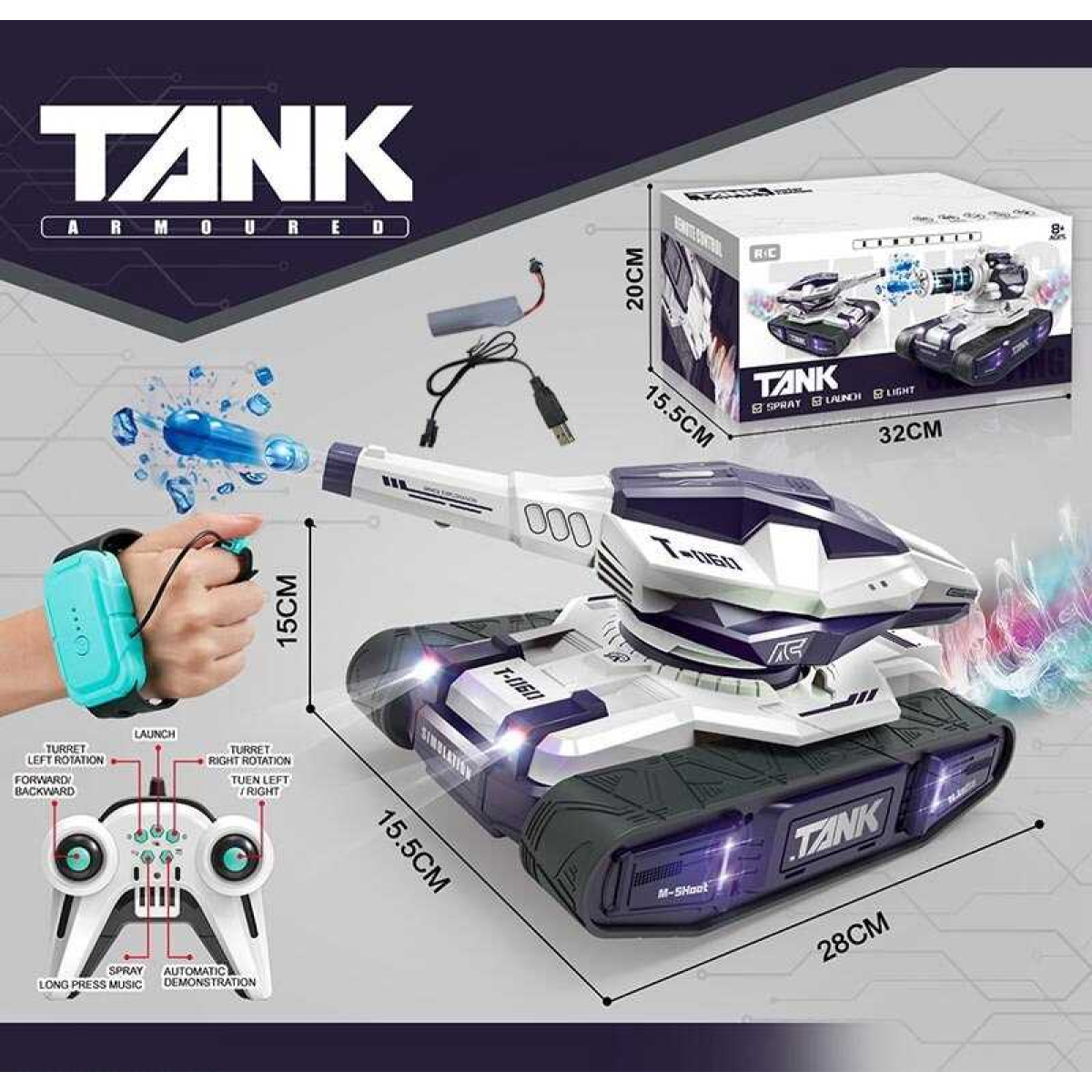 Танк на радіокеруванні 399 D-7 (18) пульт 2.4 GHz, акумулятор 3.7 V, сенсорний браслет, стріляє орбізами, генерує пару, звуки, підсвічування, орбізи, пляшечка, дріт, в коробці