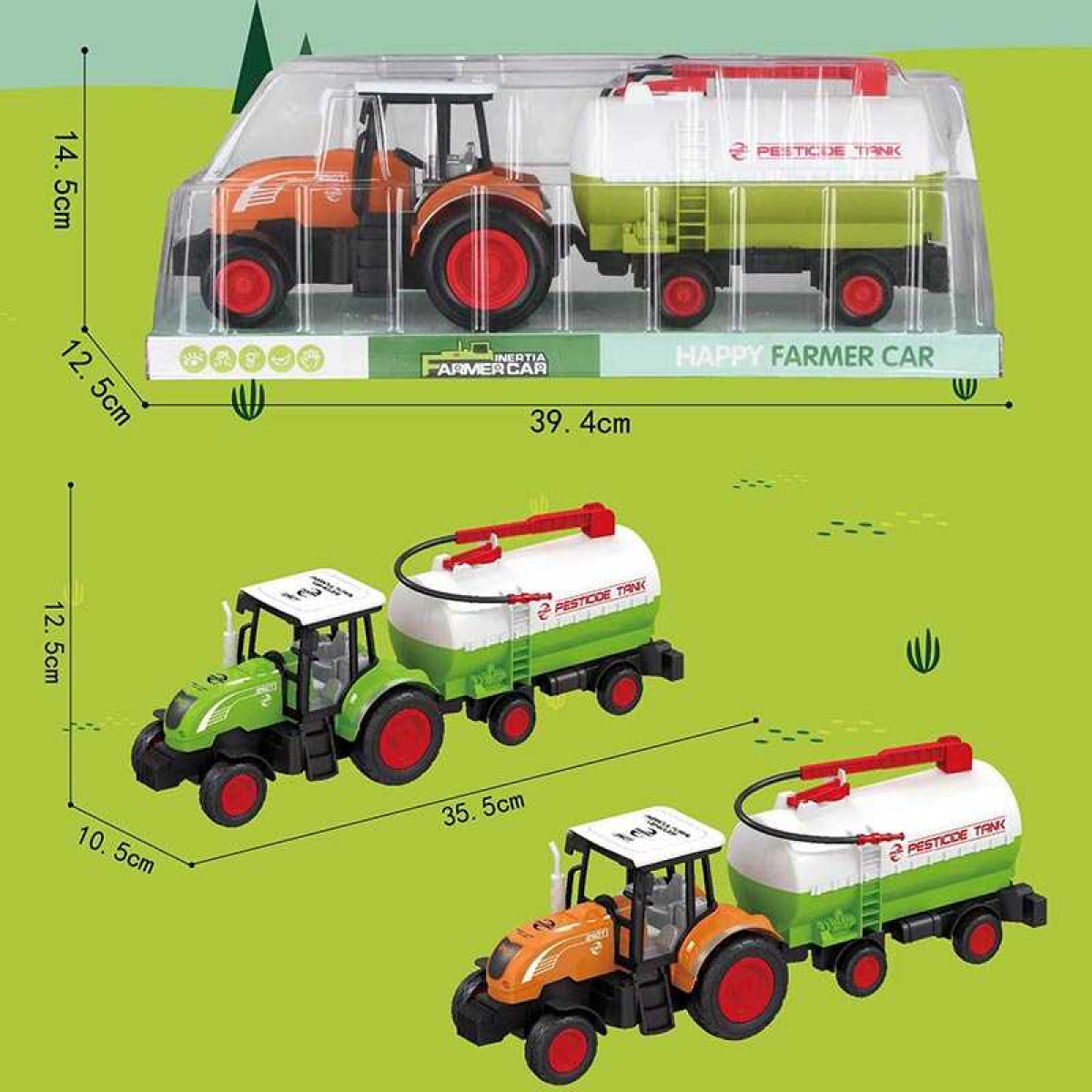 Трактор 727-24 (48/2) 2 кольори, інерція, знімний причеп, рухомі деталі, в слюді