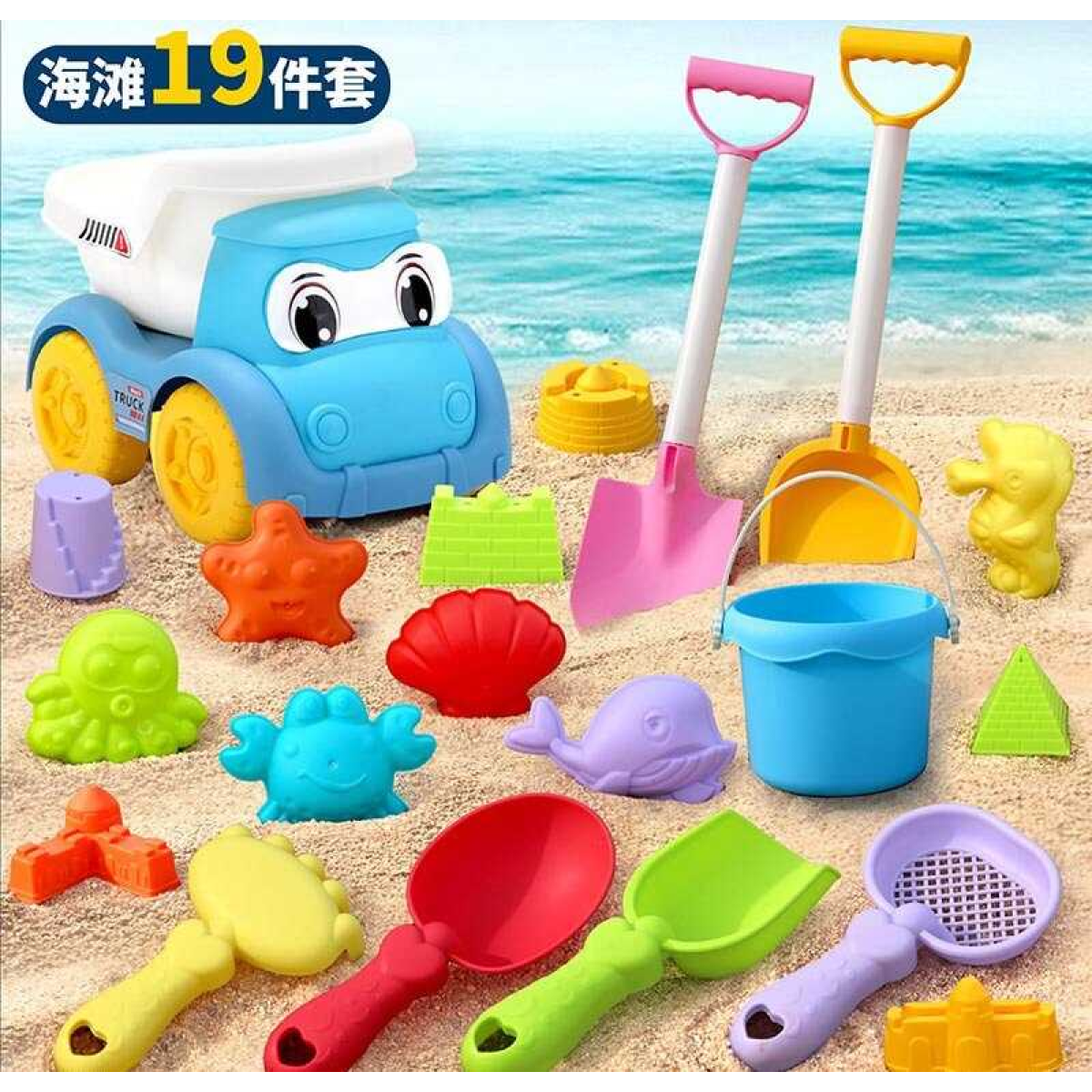 Пісочний набір W 218-43 (64/2) розмір самоскида - 16.5х11.х13 см, висота відра - 10 см, граблі, сито, 4 лопатки, 11 формочок, в сітці