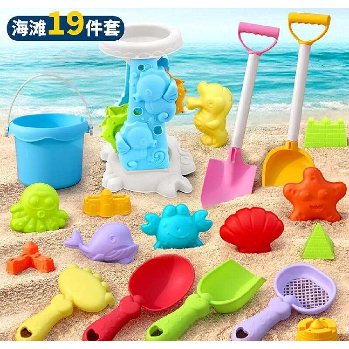 Пісочний набір W 218-44 (72/2) висота відра - 10 см, млин, граблі, сито, 2 великі лопатки, 2 маленькі лопатки, 11 формочок, в сітці