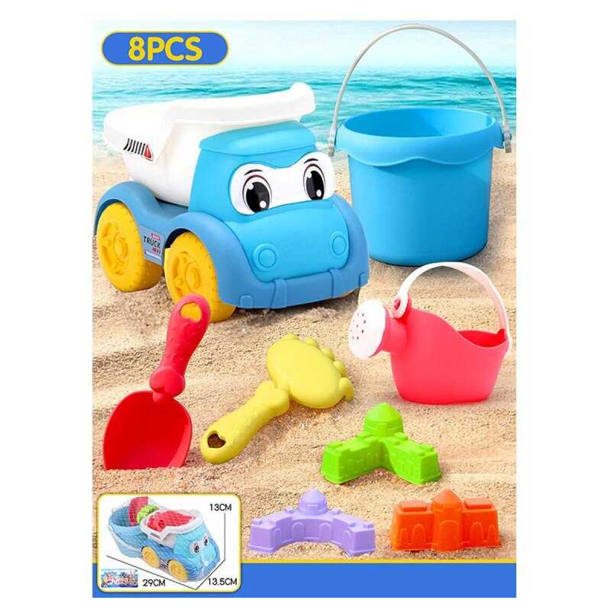 • Пісочний набір W 218-62 (72/2) розмір самоскида: 16.5х11х13 см, висота відра - 9.5 см, лійка, граблі, 3 формочки, в сітці