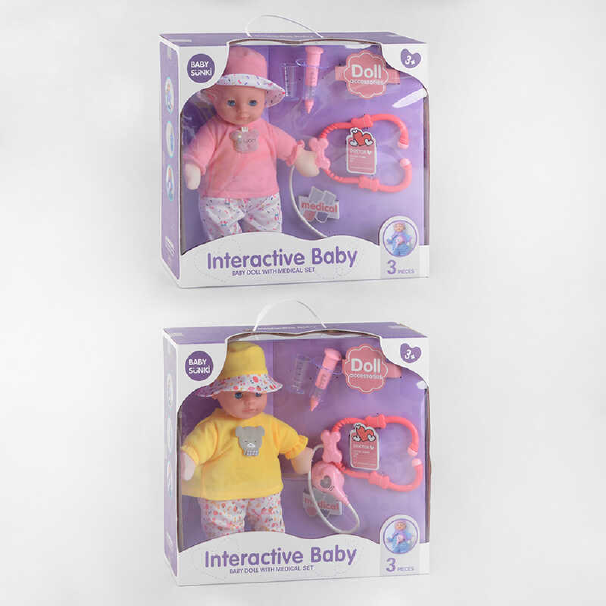 Пупс 1861-11/12 (12) 2 види, м“якотілий, говорить мама-тато, видає звуки, плаче, сміється, 3 аксесуари, функціональний стетоскоп, в коробці