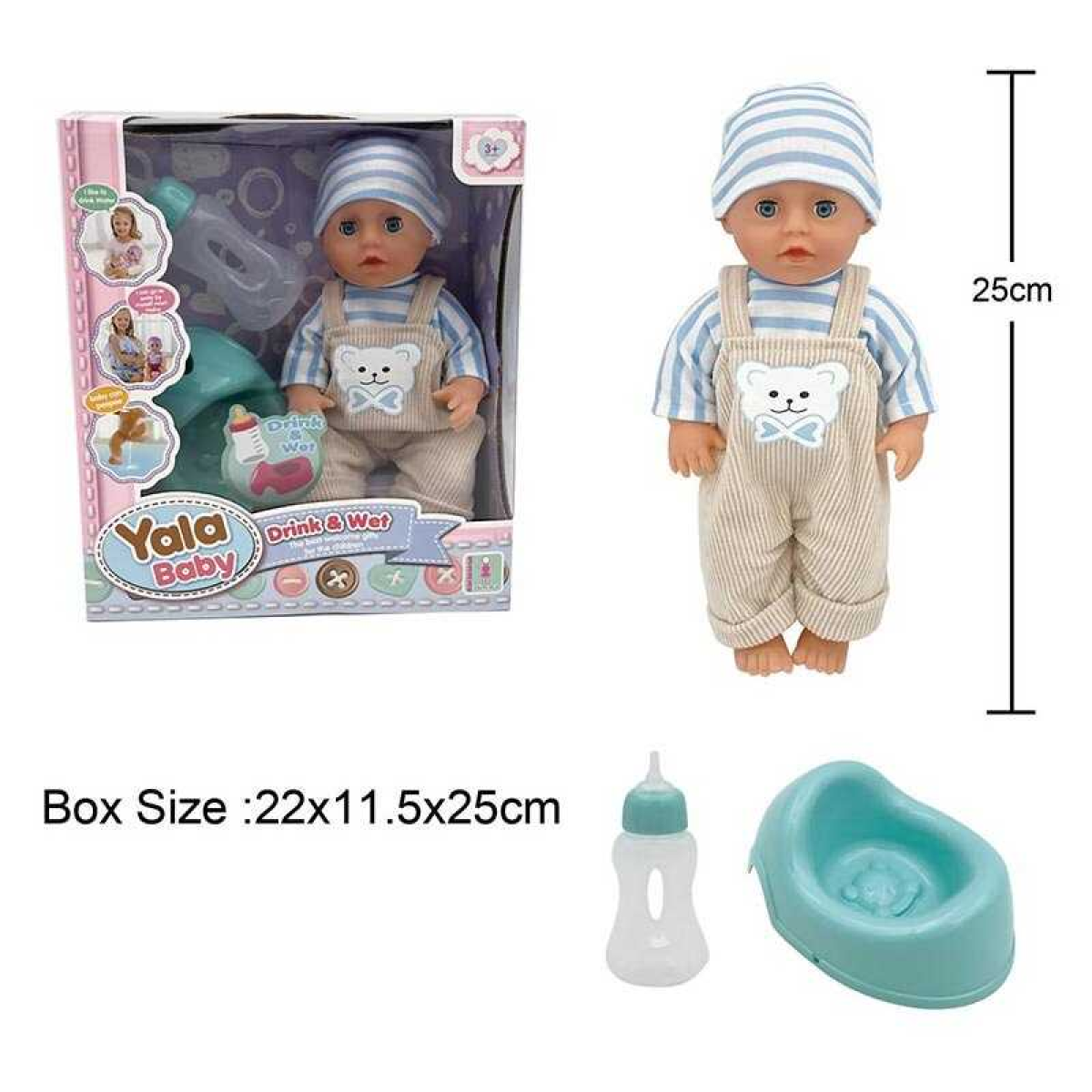 Пупс YL 2425 A-L (48) п“є з пляшечки, ходить на горщик, заплющує очі, аксесуари, висота 25 см, в коробці