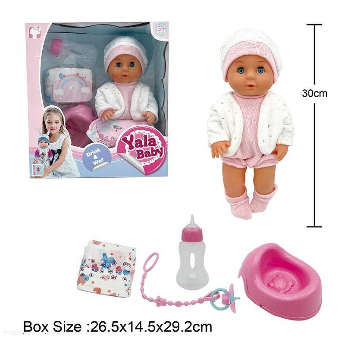 Пупс YL 2430 L-A (16) п“є з пляшечки, ходить на горщик, заплющує очі, аксесуари, висота 30 см, в коробці