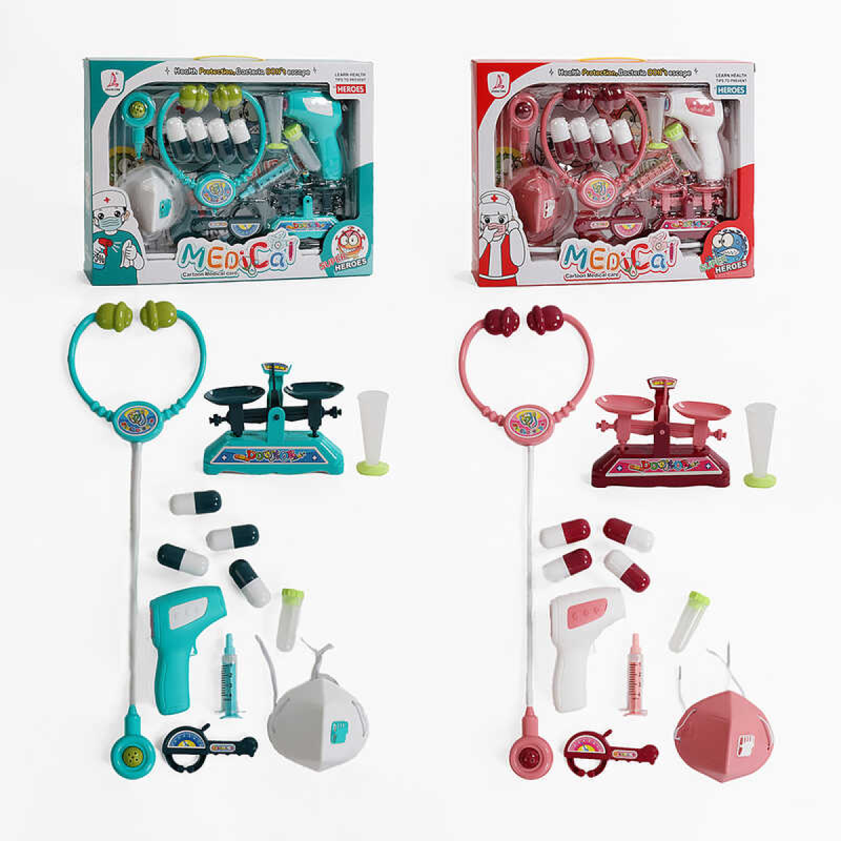 Набір лікаря 392-9 (48/2) 2 кольори, 10 ігрових елементів, стетоскоп, ваги, маска, пігулки, в коробці