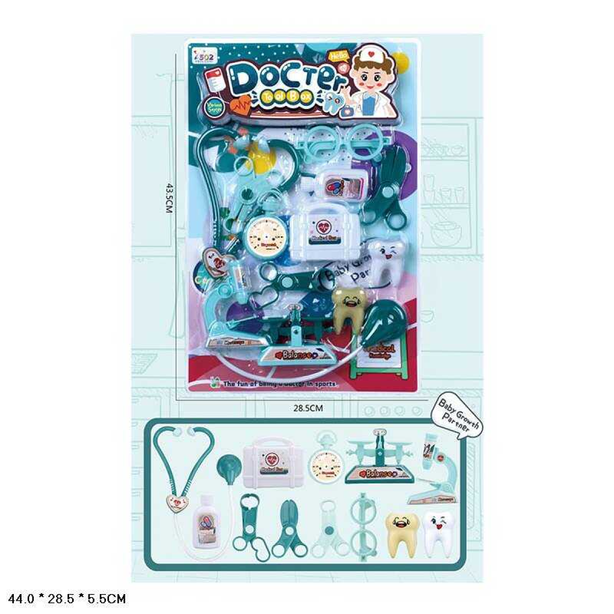 Набір лікаря 502-168 (96/2) стетоскоп, операційне приладдя, зуби, мікроскоп і тонометр, на листі