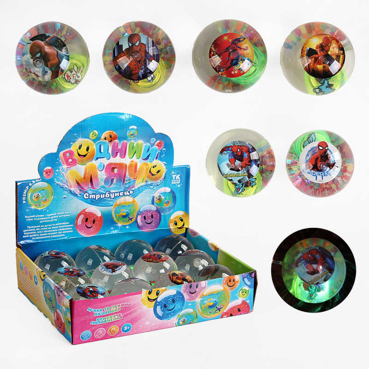 М`яч стрибун C 65465 (12) “TK Group“, ЦІНА ЗА 12 ШТУК В БЛОЦІ, “Герой”, блискітки, підсвічування, в коробці