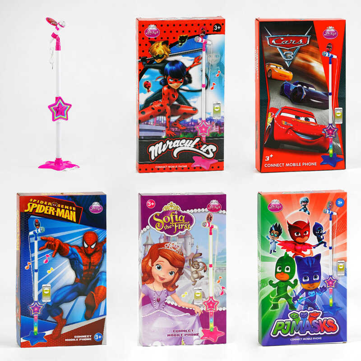 Мікрофон DS 002-1 B/V/S/T/E (60/2) 5 видів, ВИДАЄТЬСЯ МІКС, підсвічування, можливість під’єднання телефона, в коробці