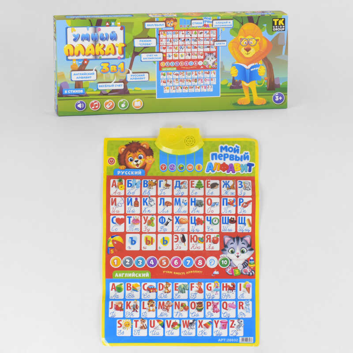 Плакат “Розумний плакат 3в1“ 20932 (12) “TK Group“, 5 віршів, режим “слів“, російсько-англійське озвучування, в коробці