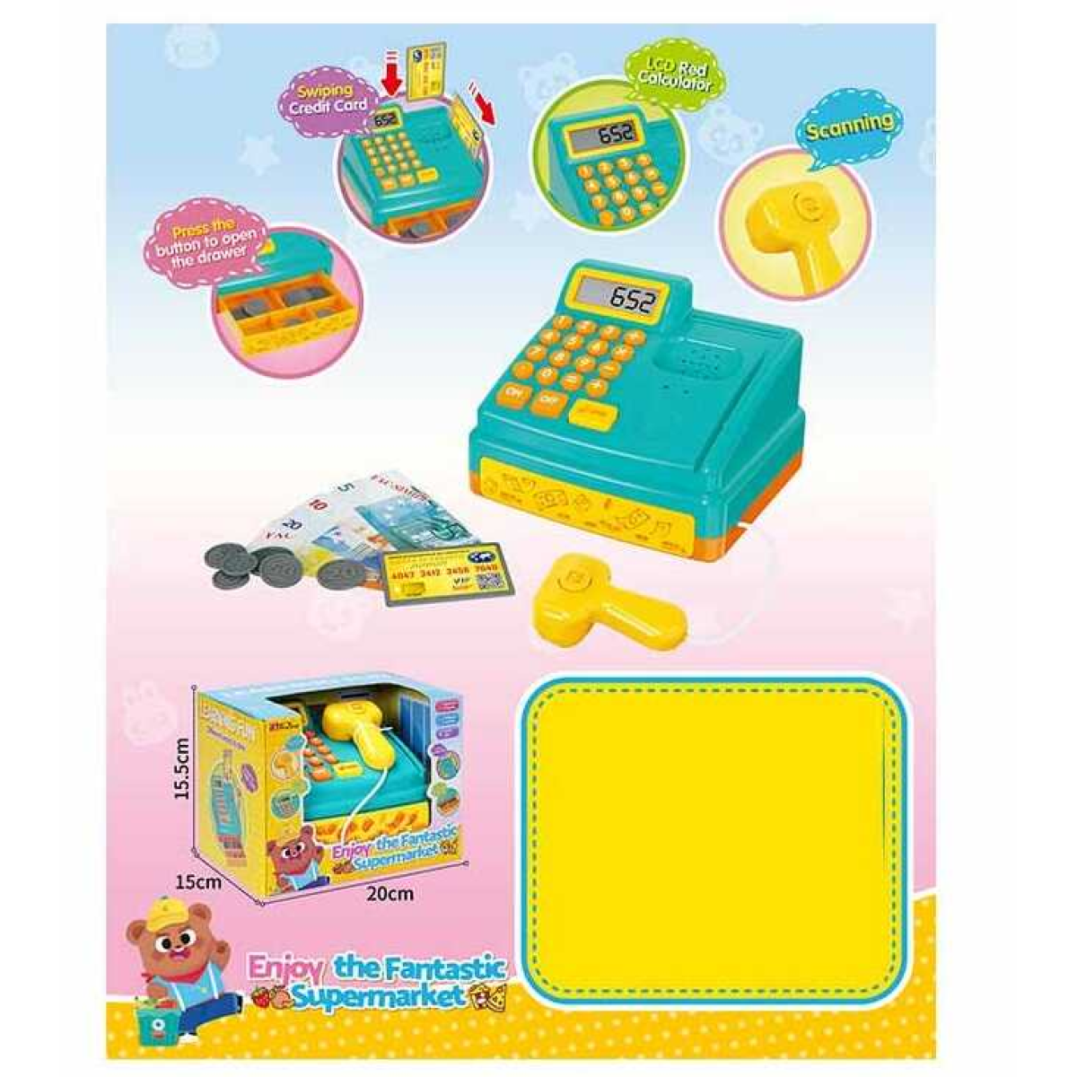 Касовий апарат 35652 (16/2) звуки, підсвічування, калькулятор, муляжі грошей, в коробці