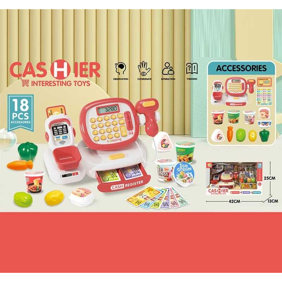 Касовий апарат C 668-31 (24/2) 18 аксесуарів, муляжі харчових продуктів, підсвічування сканера, звук, калькулятор, іграшкові гроші, в коробці