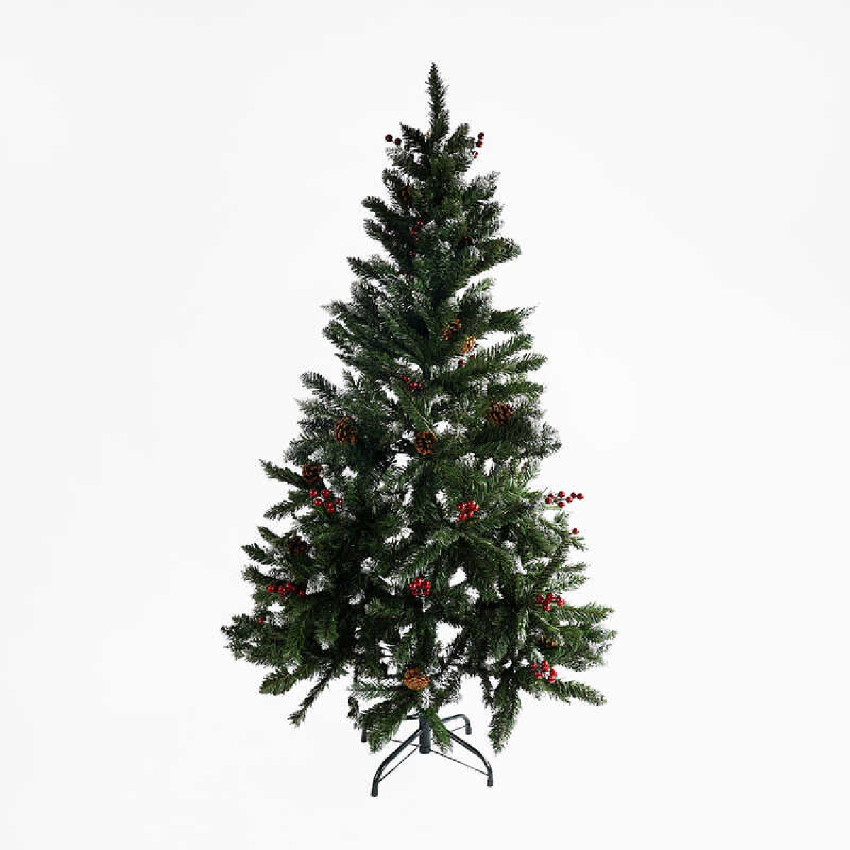 Ялинка штучна C 66875 (1) висота - 150 см, розбірна, прикрашена ягодами й шишками, в коробці