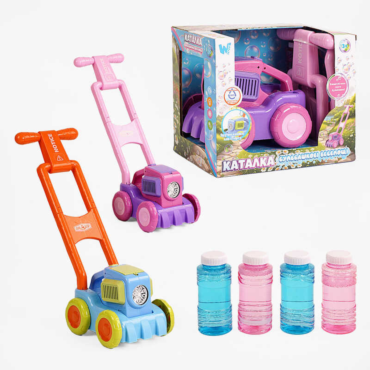 Газонокосарка з мильними бульбашками 26061 (36/2) “WToys“, 2 кольори, висота 43см, підсвічування, 2 пляшечки з мильним розчином, в коробці