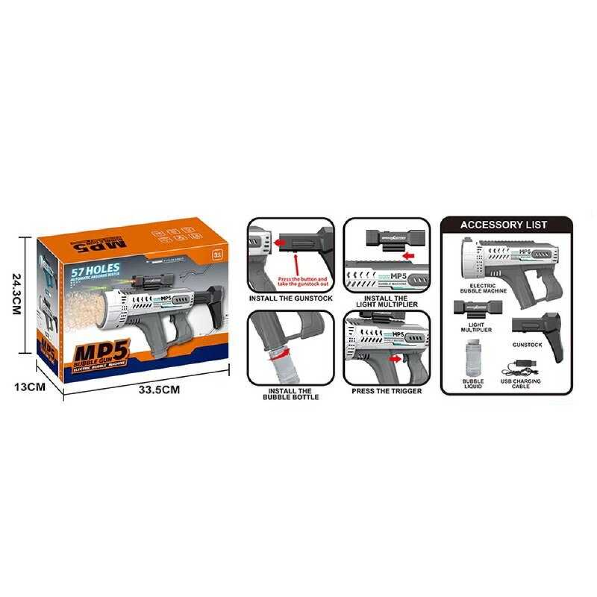 • Автомат з мильними бульбашками KB 1313 (18) підсвічування, автоматичний принцип, довжина 43см, 57 отворів, пляшечка з мильним розчином, в коробці